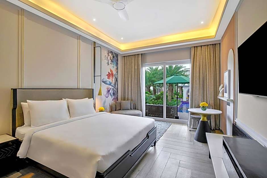 The private pool is a top feature of this suite. The spacious suite features air conditioning, a mini-bar, a tea and coffee maker, a wardrobe and a TV with streaming services.