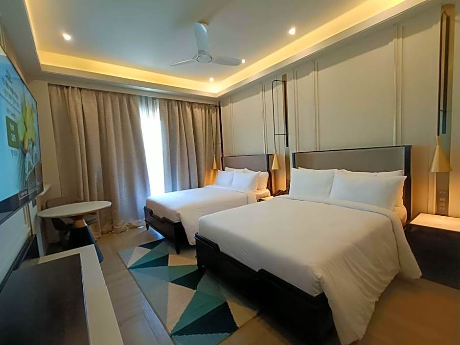 This quadruple room has air conditioning, a mini-bar, TV, as well as chocolate for guests.